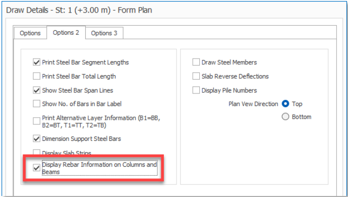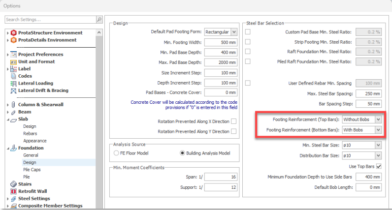 A new option allowing engineers to define different “Bending of Bar (BOB)” lengths for foundation slabs and upper floors. This distinction makes reinforcement detailing more realistic and better aligned with practical construction practices. It also gives engineers greater fine-tuning ability when preparing slab drawings.