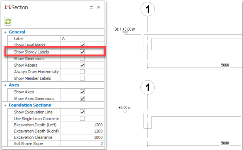 A new toggle that lets you show or hide storey labels on plan section elevation markers. This simple yet powerful addition gives you better control over drawing clarity. It helps engineers tailor the level of information displayed depending on the drawing’s purpose or audience.