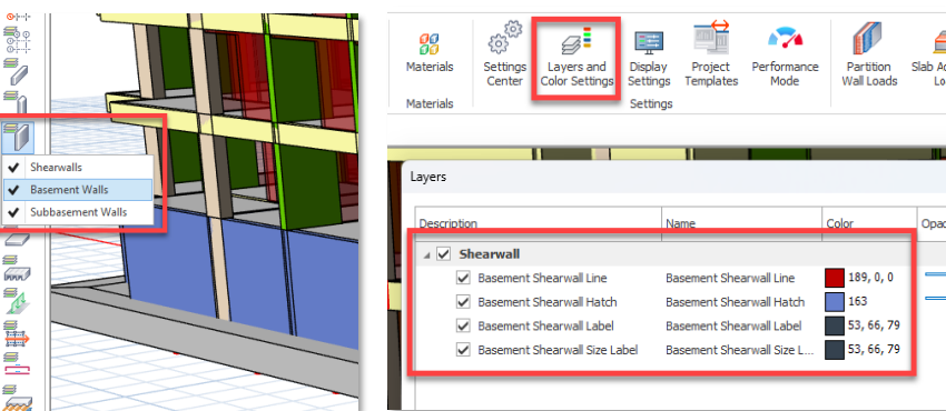 Basement walls now appear on their own dedicated layer, separate from shear walls. This separation improves visibility control and makes it easier to manage complex basement conditions. It also enhances print quality by allowing targeted color and line-weight adjustments.