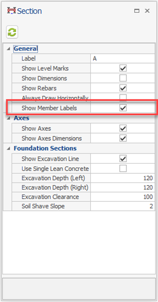 Floor plan sections in ProtaDetails include member labels. Member labels can be turned on or off using the section properties window.