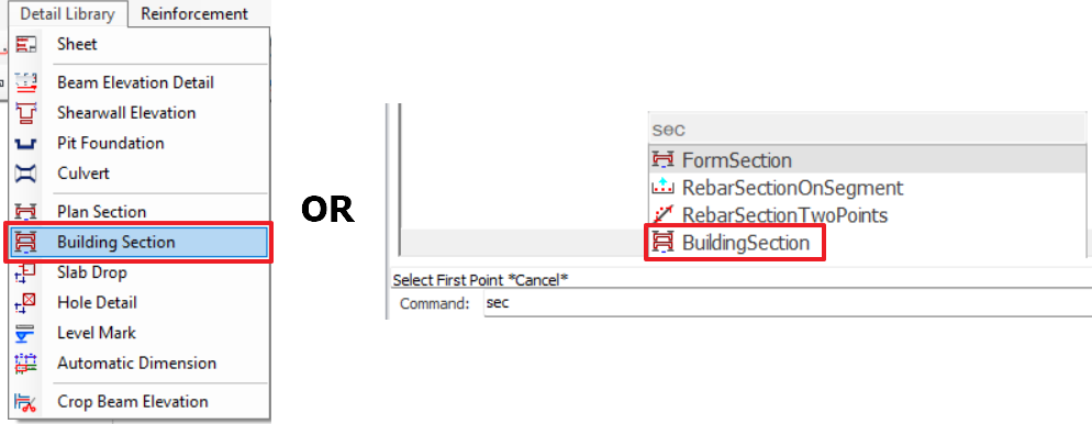2. Enter Building Section command on the command line or Details Library pulldown menu.