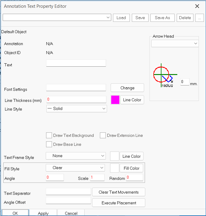 - Annotation Settings button (lower right) : Access to Annotation Text Property Edit where you can view or change the text settings (as outlined in previous section)