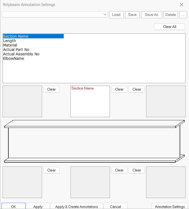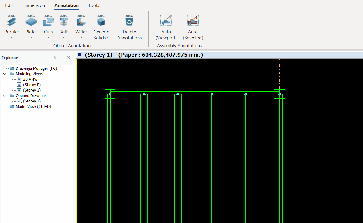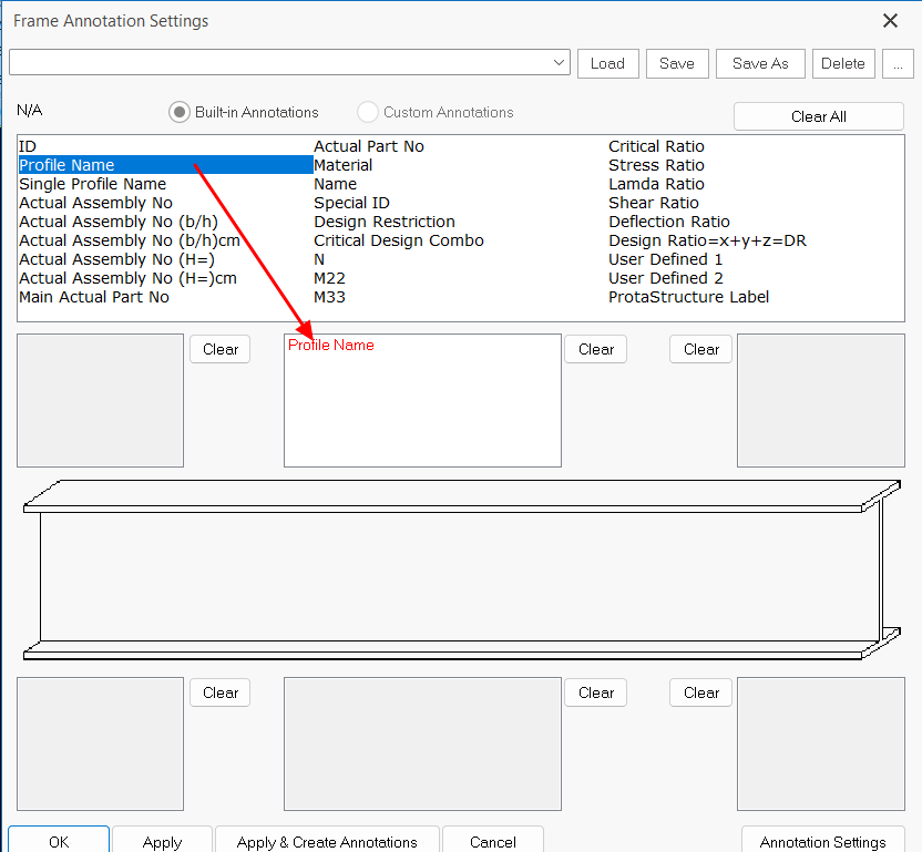 Profile Annotation is used to annotate elements such as beam, column, brace, purlins and girts.