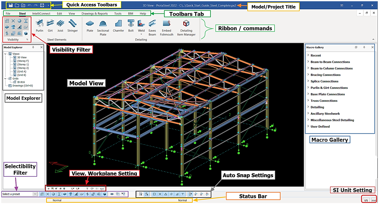 Macro Gallery consists all the steel connections creation tools, eg. gusset plate, fin plate, haunch, splice etc.