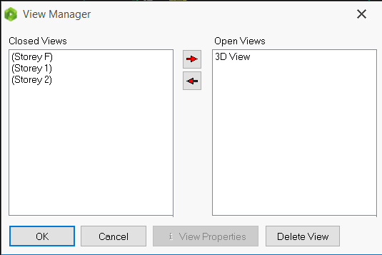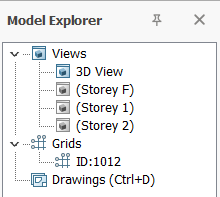 Views are created/imported from ProtaStructure under the "Views" collapsible folder in the Model Explorer pane in the left pane. By default, the views created are 3D view & plan view of each stories. Double-click on the desired view to access it.