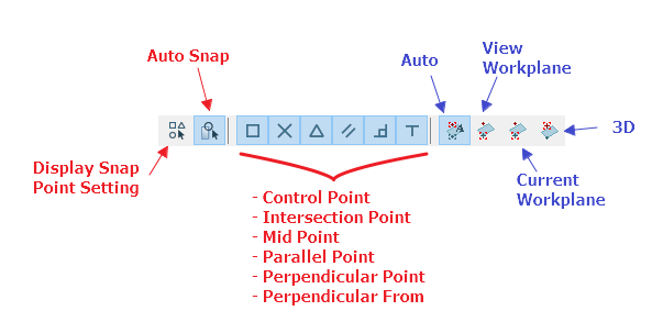 By default, the auto snap point will be based on any workplane automatically. User can change here to select the snap point only set to below options: