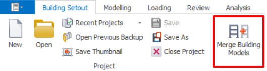 - Select “Merge Building Models” which is located under "Building Setout" tab.
