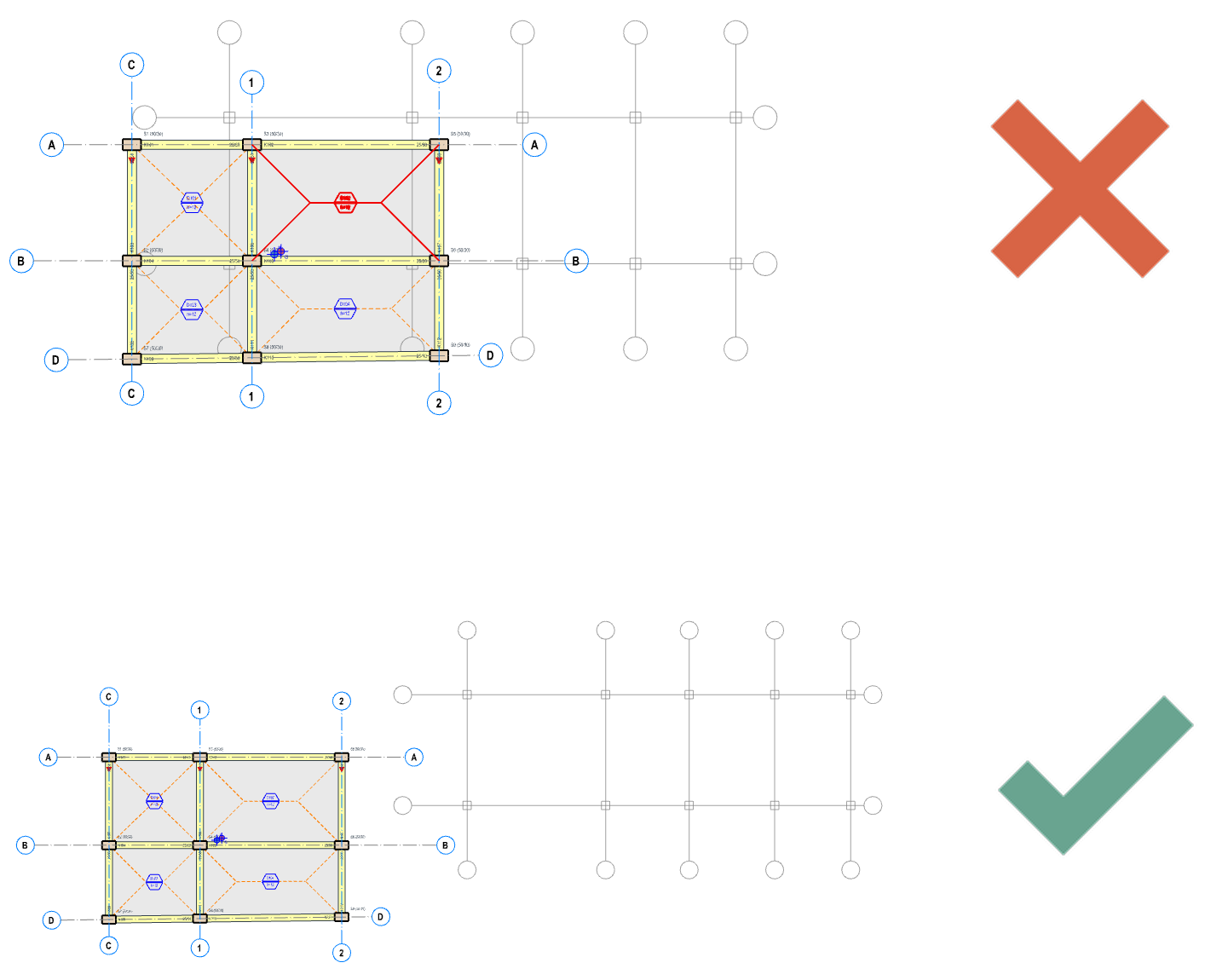 This option can be used to import the axis system of an existing project to a new project that does not have any pre-defined axis. This option is also useful as all building merging options requires a common axes system between two projects. - Import Only the Foundation Columns