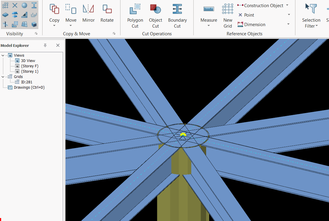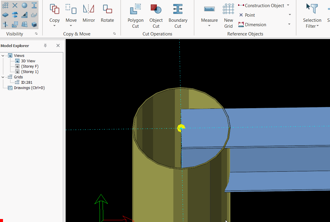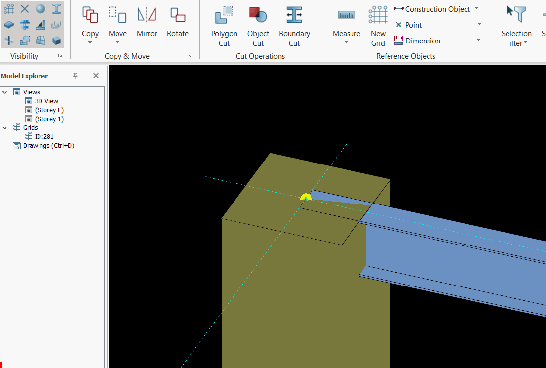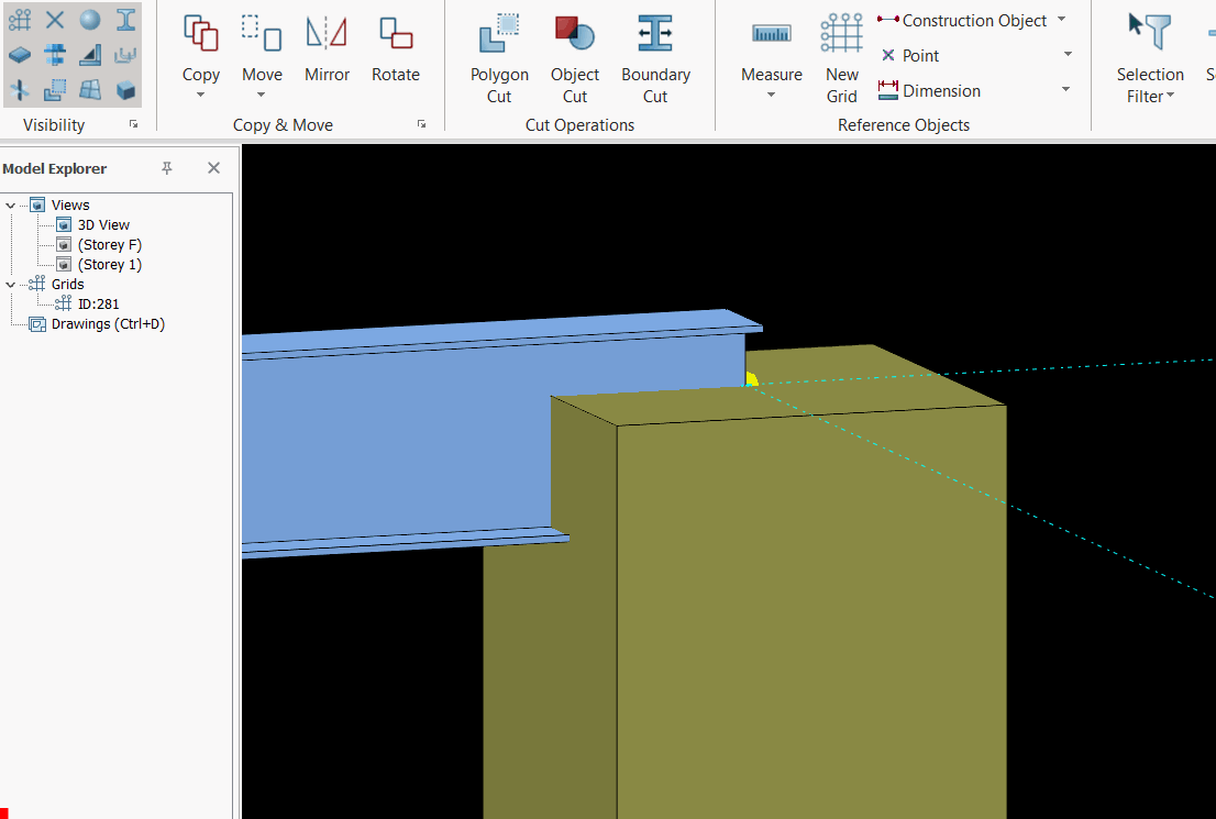 In manual detailing, cut operation can be used to cut unwanted area/region to ensure the members is correctly connected.