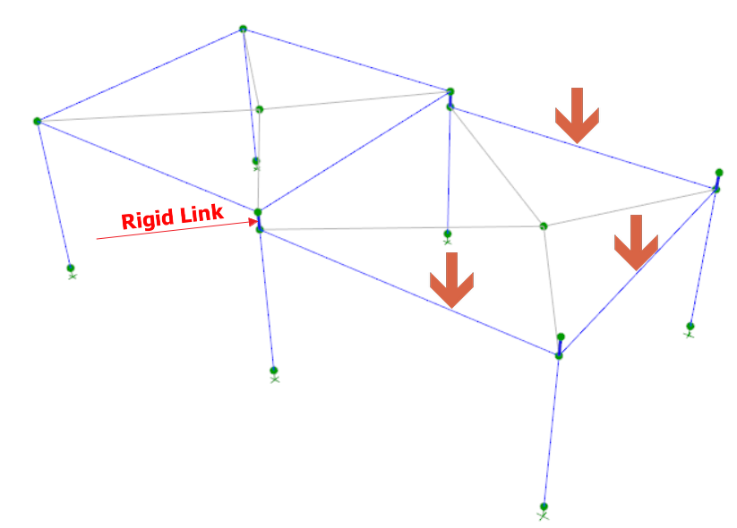 - Rigid link (dark blue) auto-created at the drop location, resulting in increase of stiffness at this beam column joint.