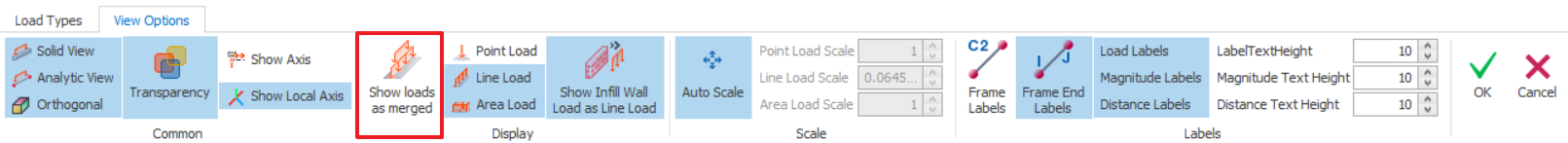 : If it is toggled on, infill wall will be shown as line loads. If it is toggled off, infill wall will be rendered with actual height and width.