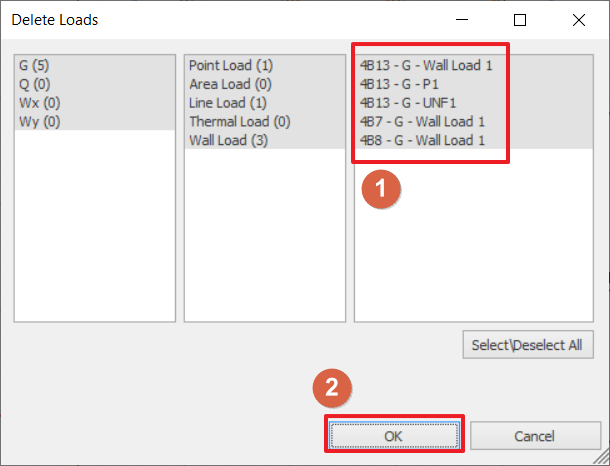 - Choose the load case to insert the loads. Existing loads will be listed for selected load case