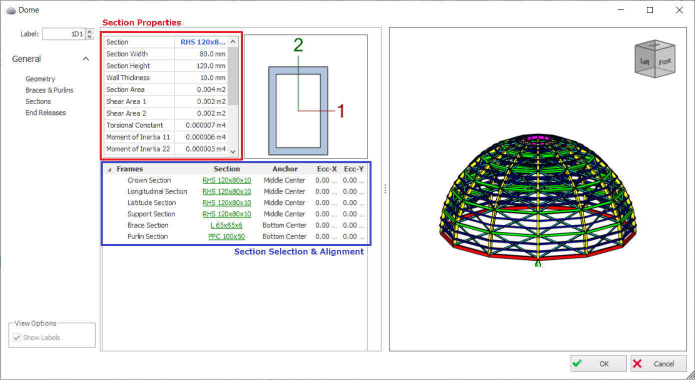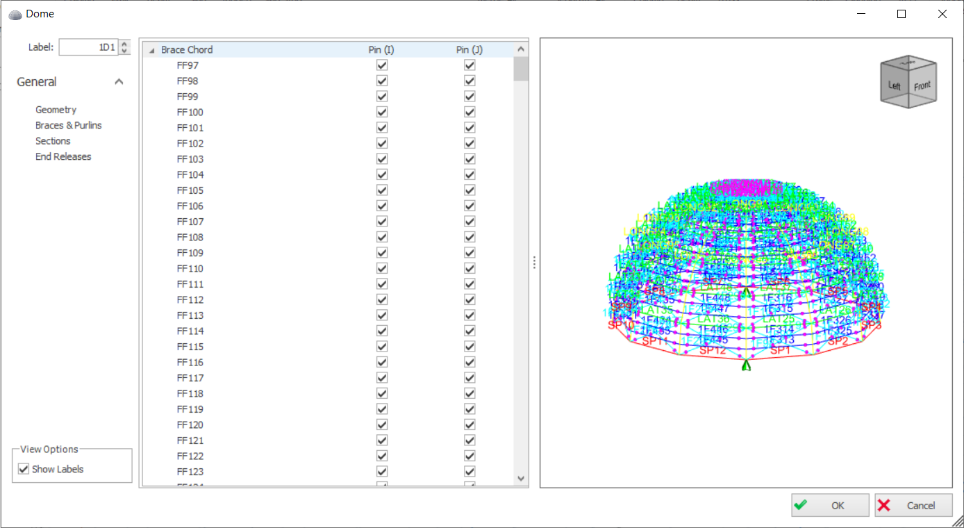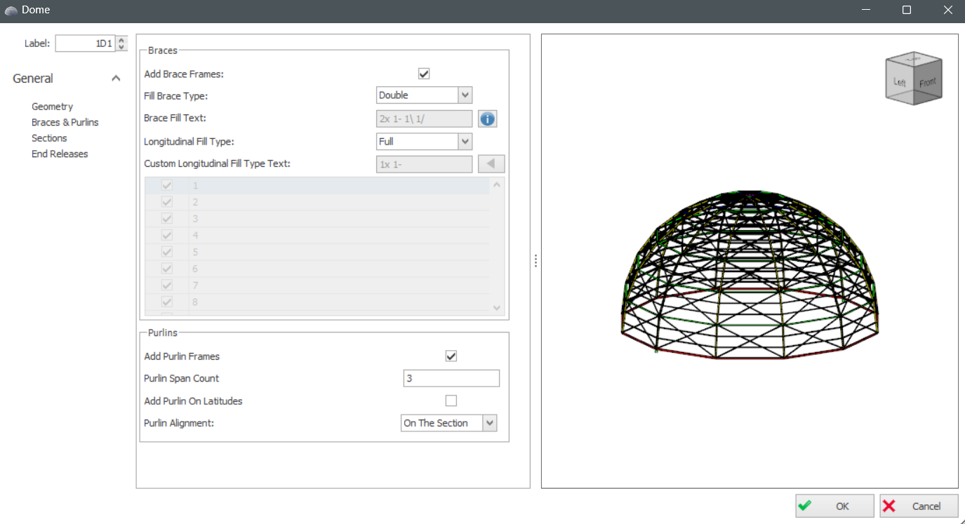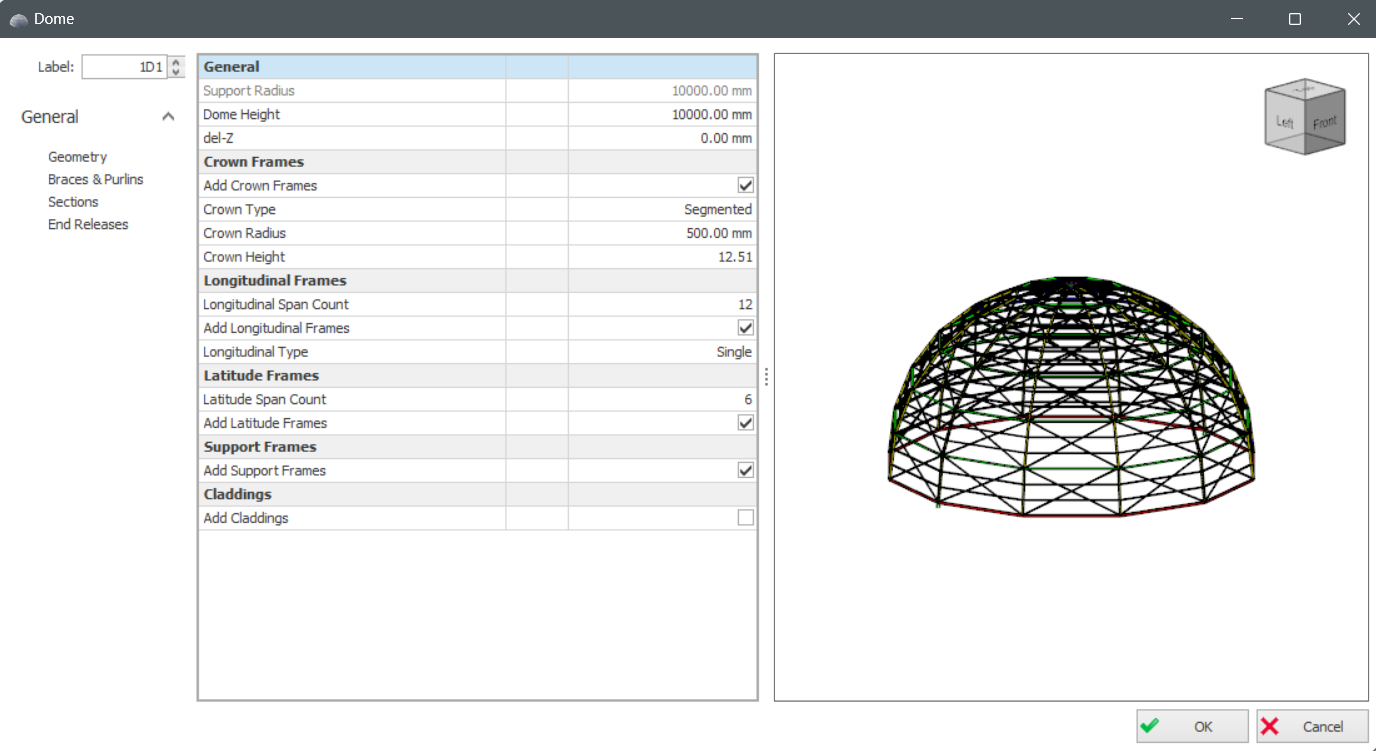 - Add Brace Frames : Option to provide bracing in the dome structure.