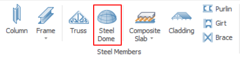 Steel Dome Structure can be easily created using the "Steel Dome" function in the "Modelling" tab.