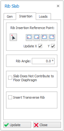 4.  Press the Insertion tab in the Ribbed Slab Form to access the second page and define the reference point and the direction of the ribs.