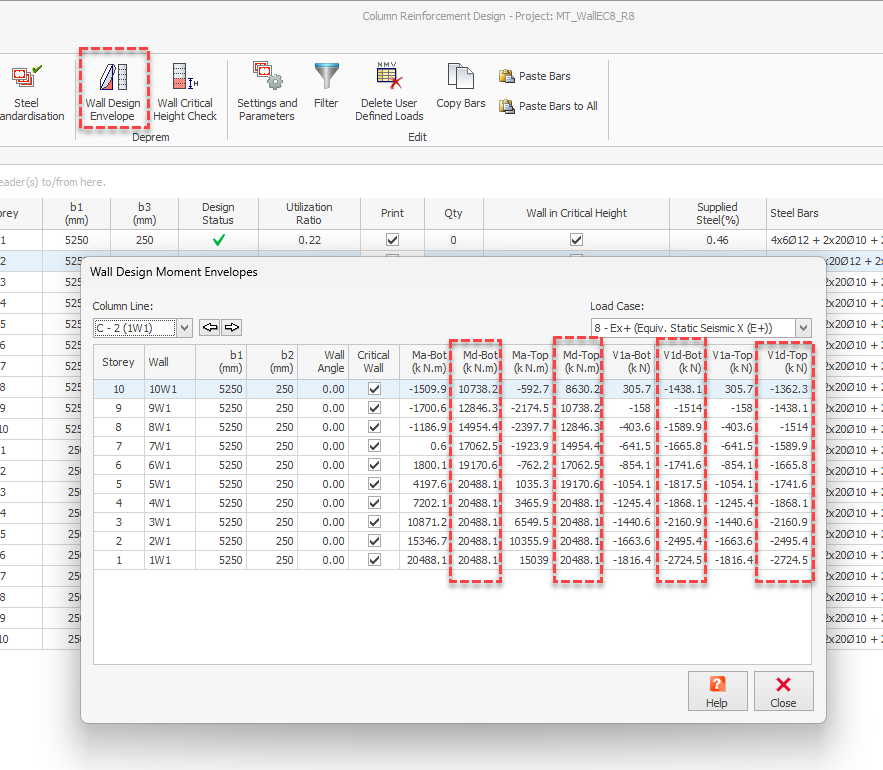 Eurocode 8 Shearwall Moment Shear Design Envelope