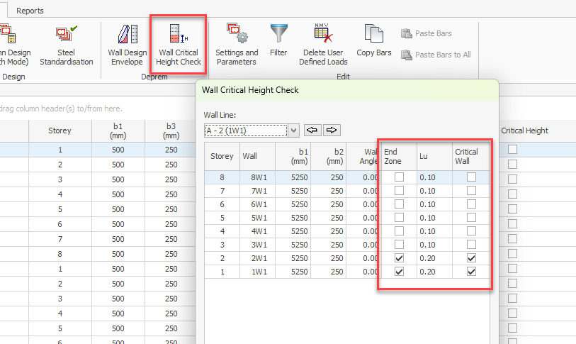 ProtaStructure does not automatically calculate the length of the boundary elements. For rectangular walls default end zone length in critical region is 0.2Lw and 0.1Lw outside the critical region. These values can be edited using the newly introduced editor.