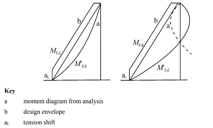 This diagram must be shifted upwards by a distance a1, designated tension shift in Eurocode 8 – 5.4.2.4 (5), consistent with the strut inclination adopted in the Ultimate Limit State verification for shear.