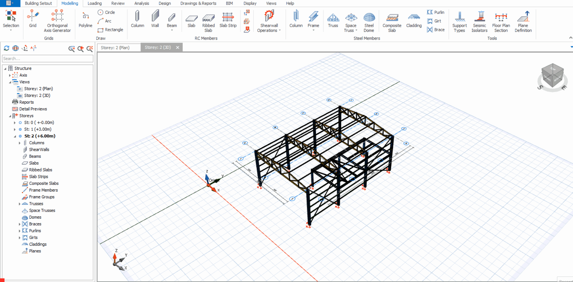 In ProtaStructure, claddings can be inserted on purlins or girts. The function of cladding is easily apply area loads, such as roof or wind loads.
