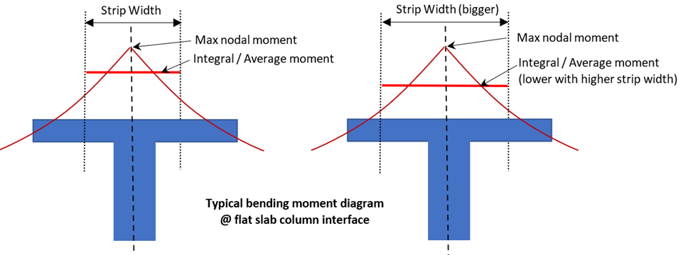 - By default, the maximum peak nodal moment will be used for finite element slab design, e.g. column center line (as shown above)