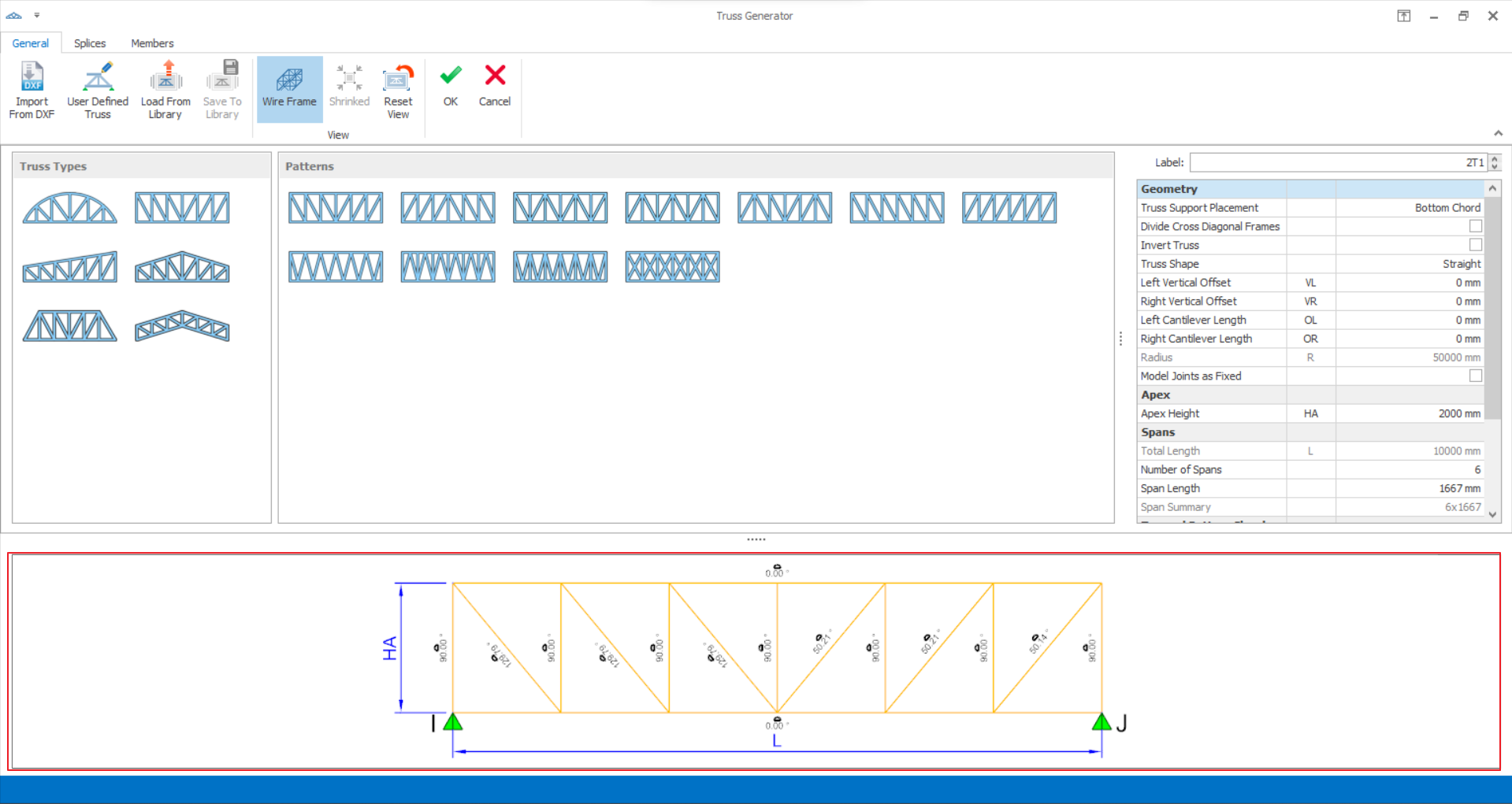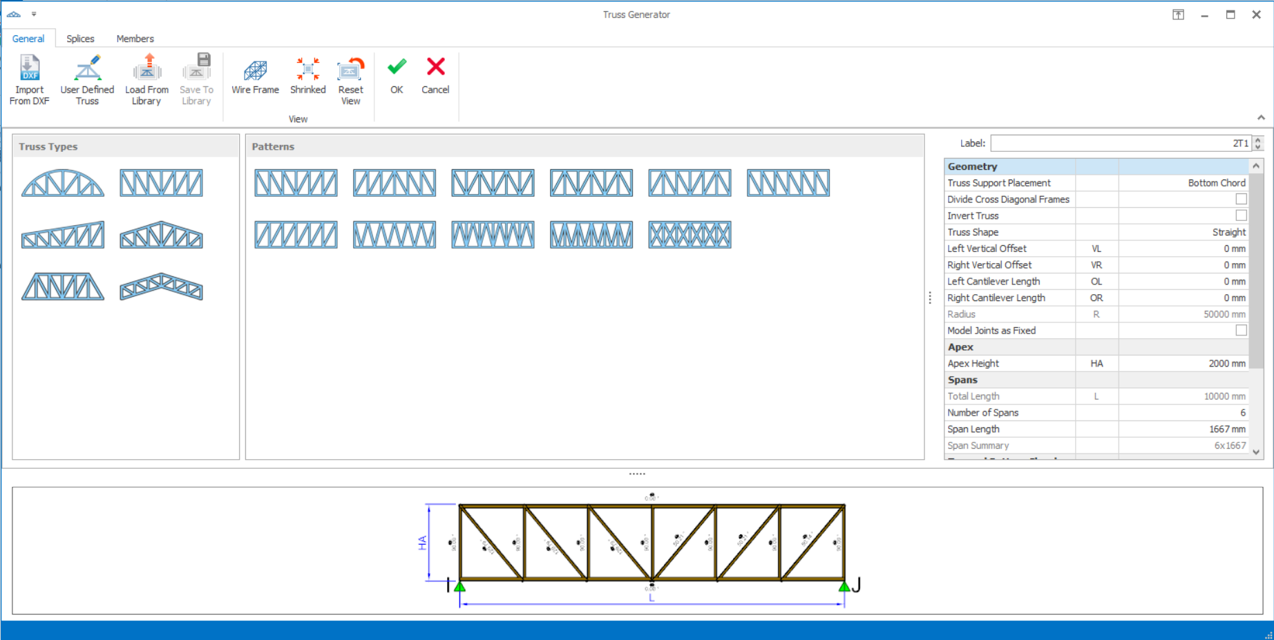 1. One of the listed truss types and patterns can be selected.