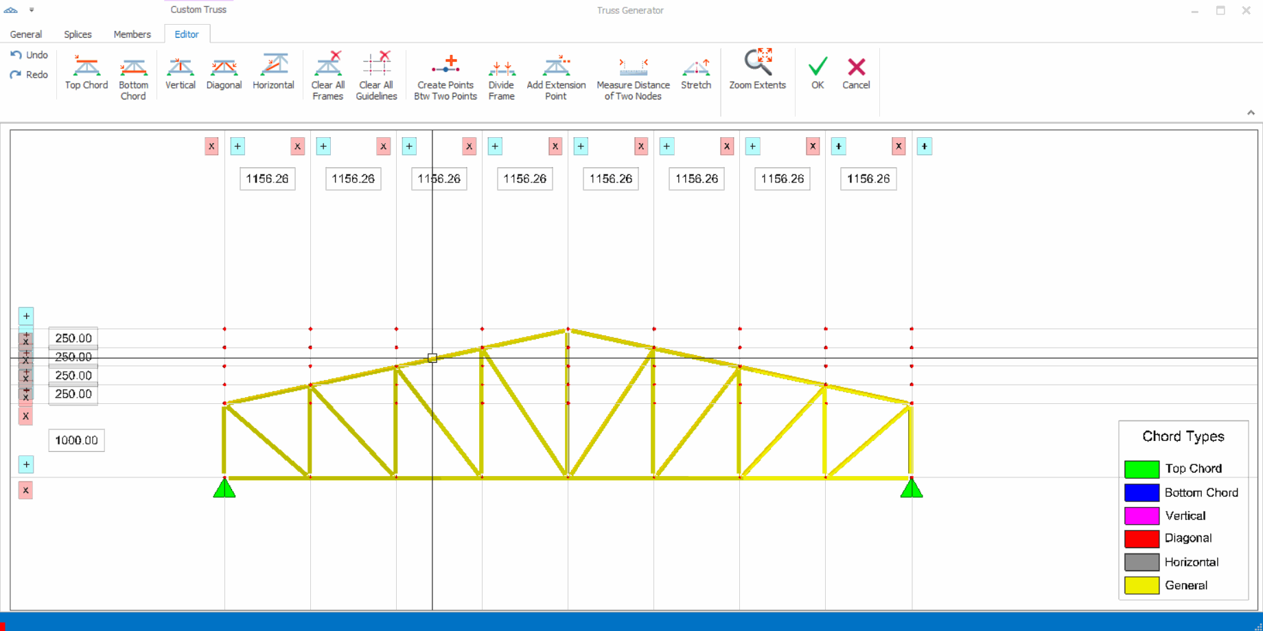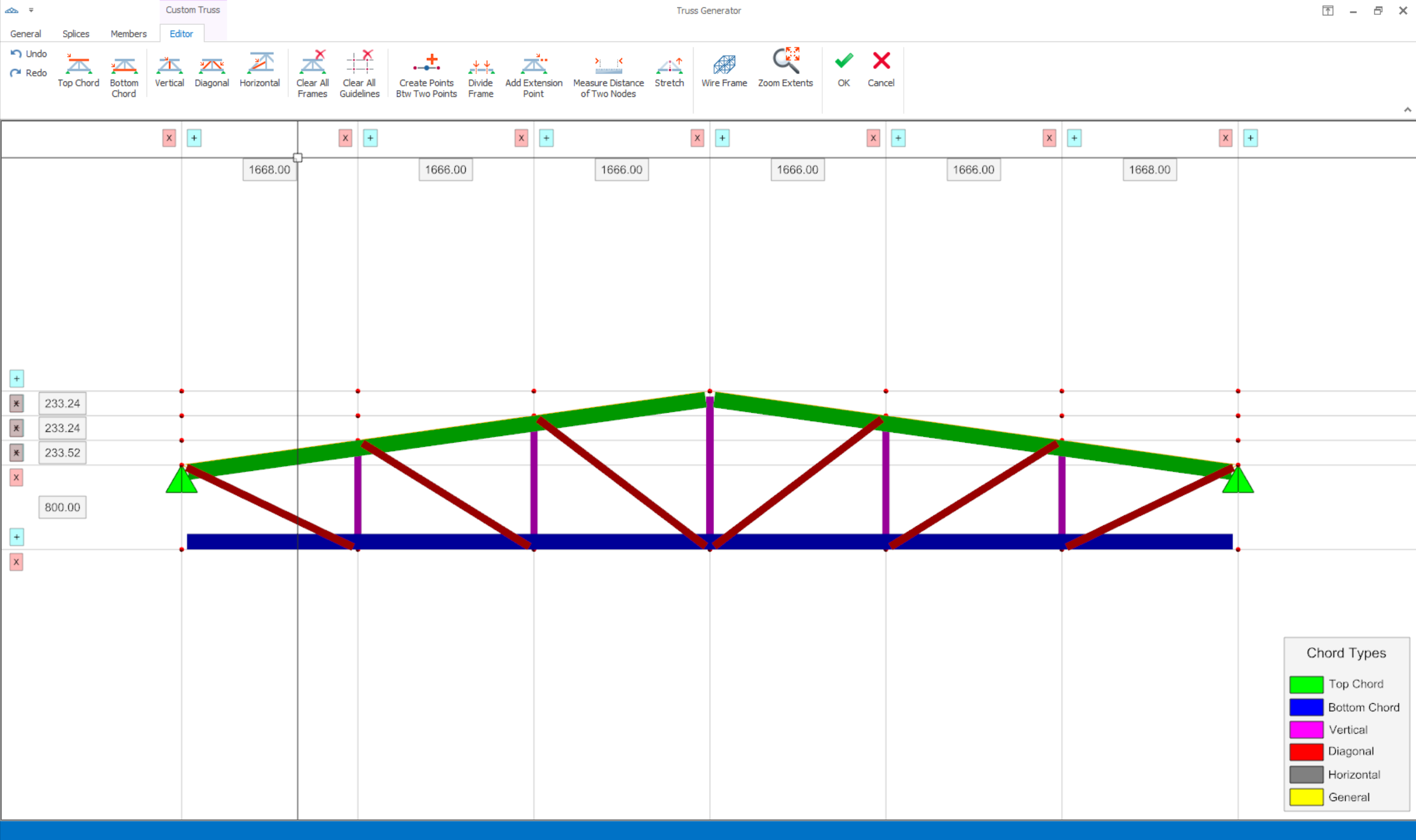 4. Vertical: Inserts the vertical members in truss pattern.