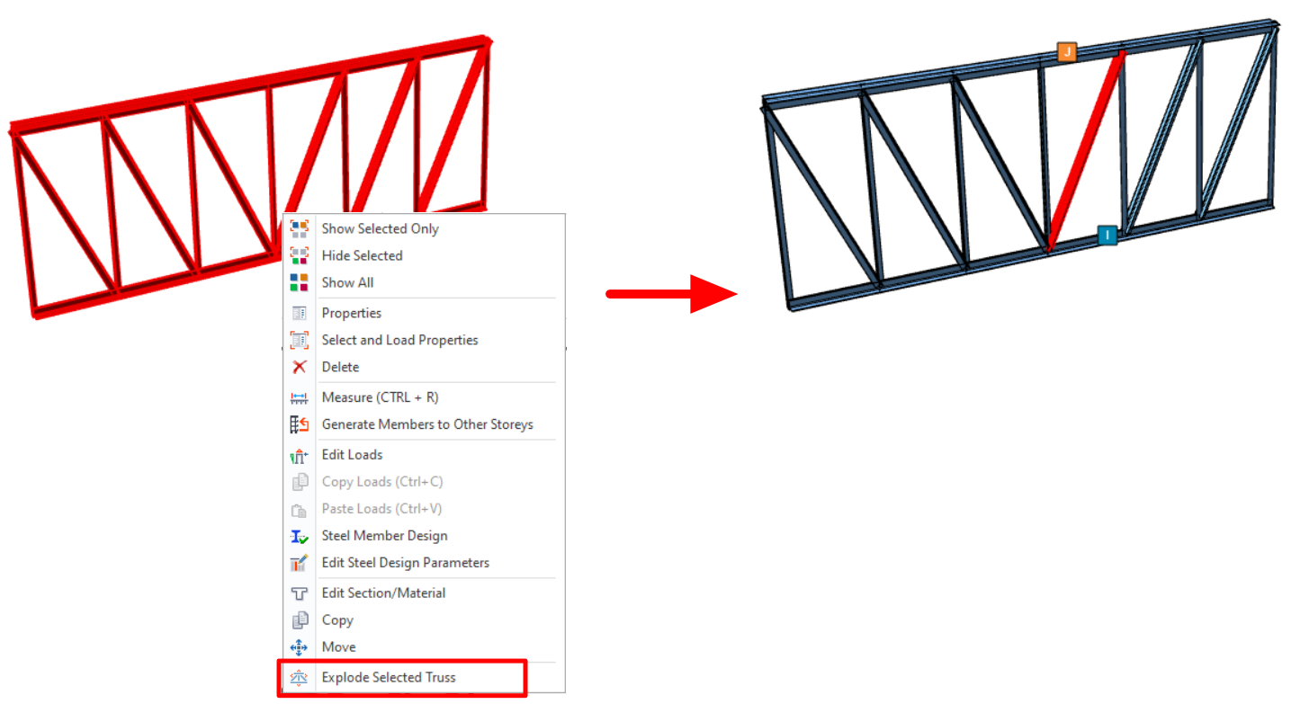 2) Right-click and pick “Explode Selected Trusses”.
