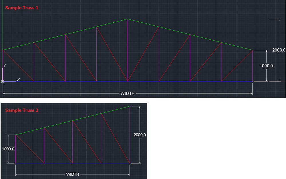 Truss can be imported from DXF format drawing. 2 Examples are showing below: