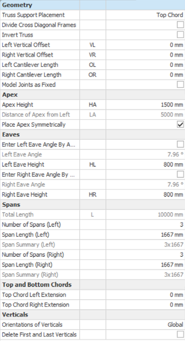 3. Once you selected the truss type, you can edit the geometry of trusses in "Geometry" section.